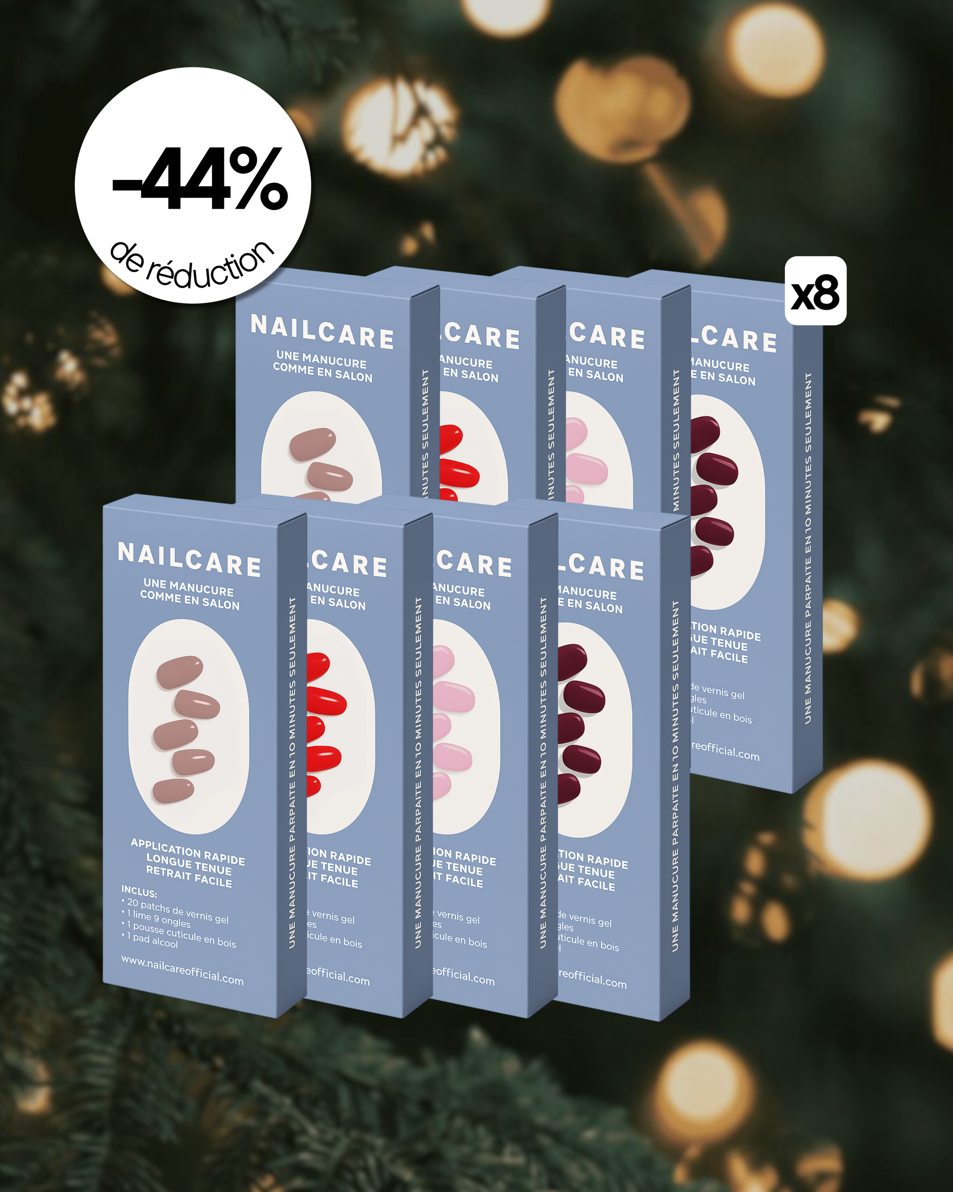 Conçus à partir de vernis en gel, les patchs NAILCARE s’adaptent à toutes les formes d’ongles pour un rendu impeccable. Avec des dizaines de designs tendances, une application ultra-rapide et une tenue longue durée, NAILCARE révolutionne votre routine manucure. Déjà adoptés par des milliers de femmes, il est temps de faire briller vos ongles, sans RDV, sans stress.